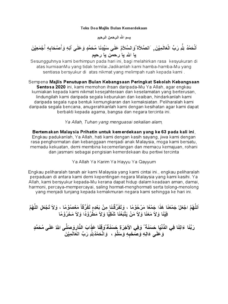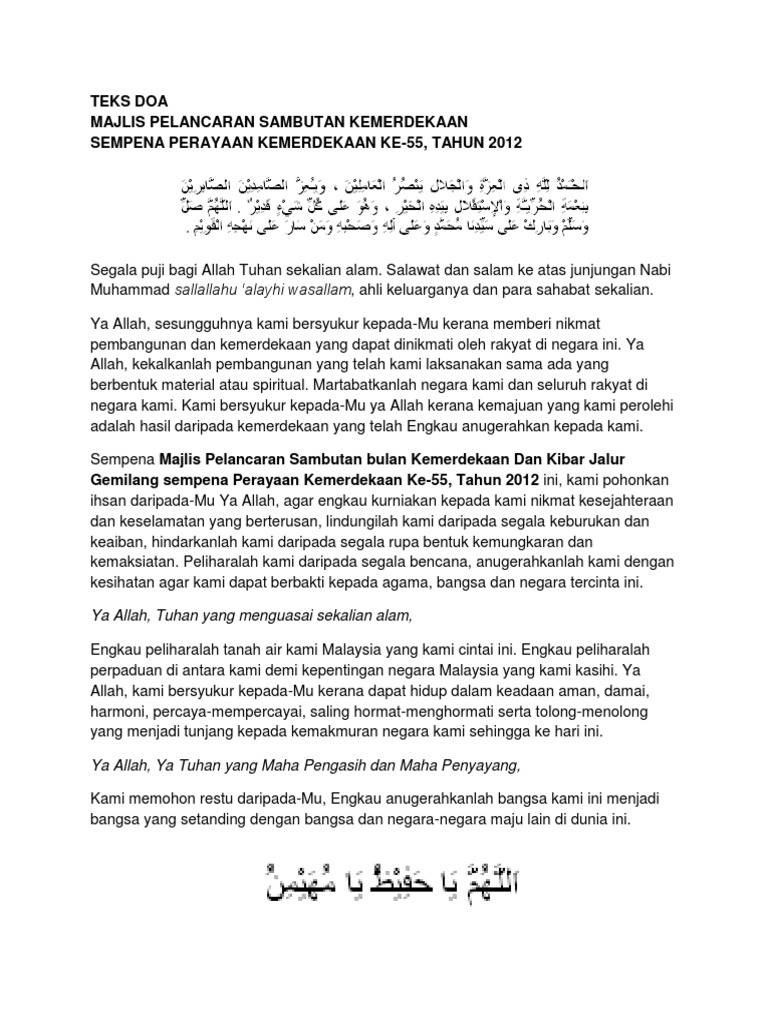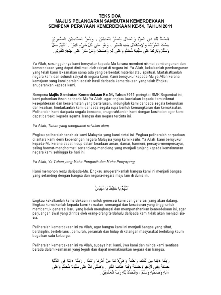 Teks Doa Majlis Pelancaran Sambutan Bulan Kemerdekaan Sk Sentosa Pdf